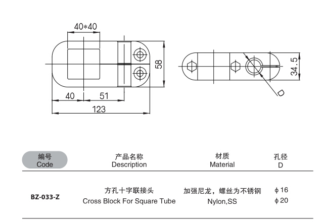 產(chǎn)品名稱:方孔十字聯(lián)接頭,輸送線配件